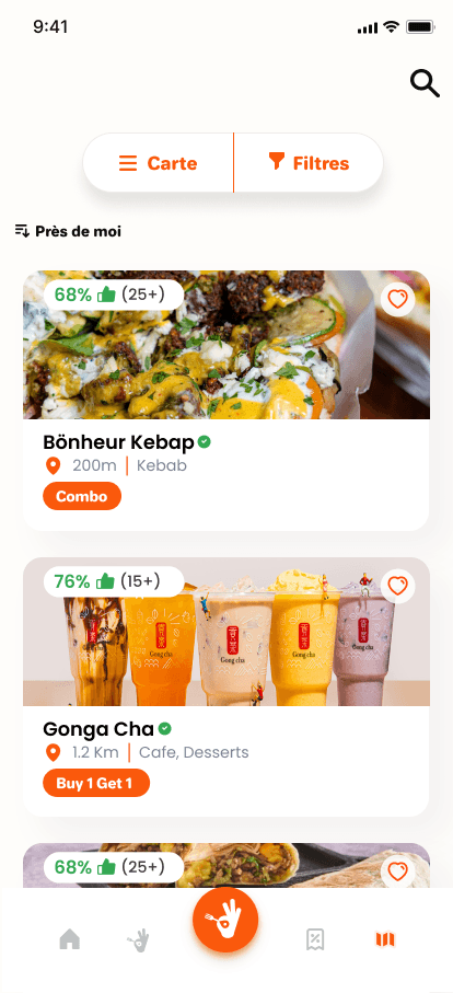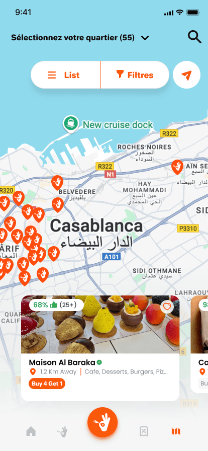 Des plats dès 25 DHS, des menus offerts, des réductions jusqu’à -60 %… sélectionnées par les restaurants eux-mêmes. Tout ça, rien que pour toi, sur une seule app.